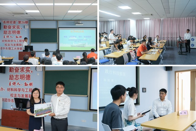 当天下午,由动漫a片 、校团委、校友与发展联络处共同主办的第26名师论道在奉贤校区C301举行。孙刚受邀作“铸造大国新材,践行科技强国”专题报告。学院党委书记袁媛、党委副书记戴诚安、校团委副书记王寅申、学院教师以及近百名学生参加活动。