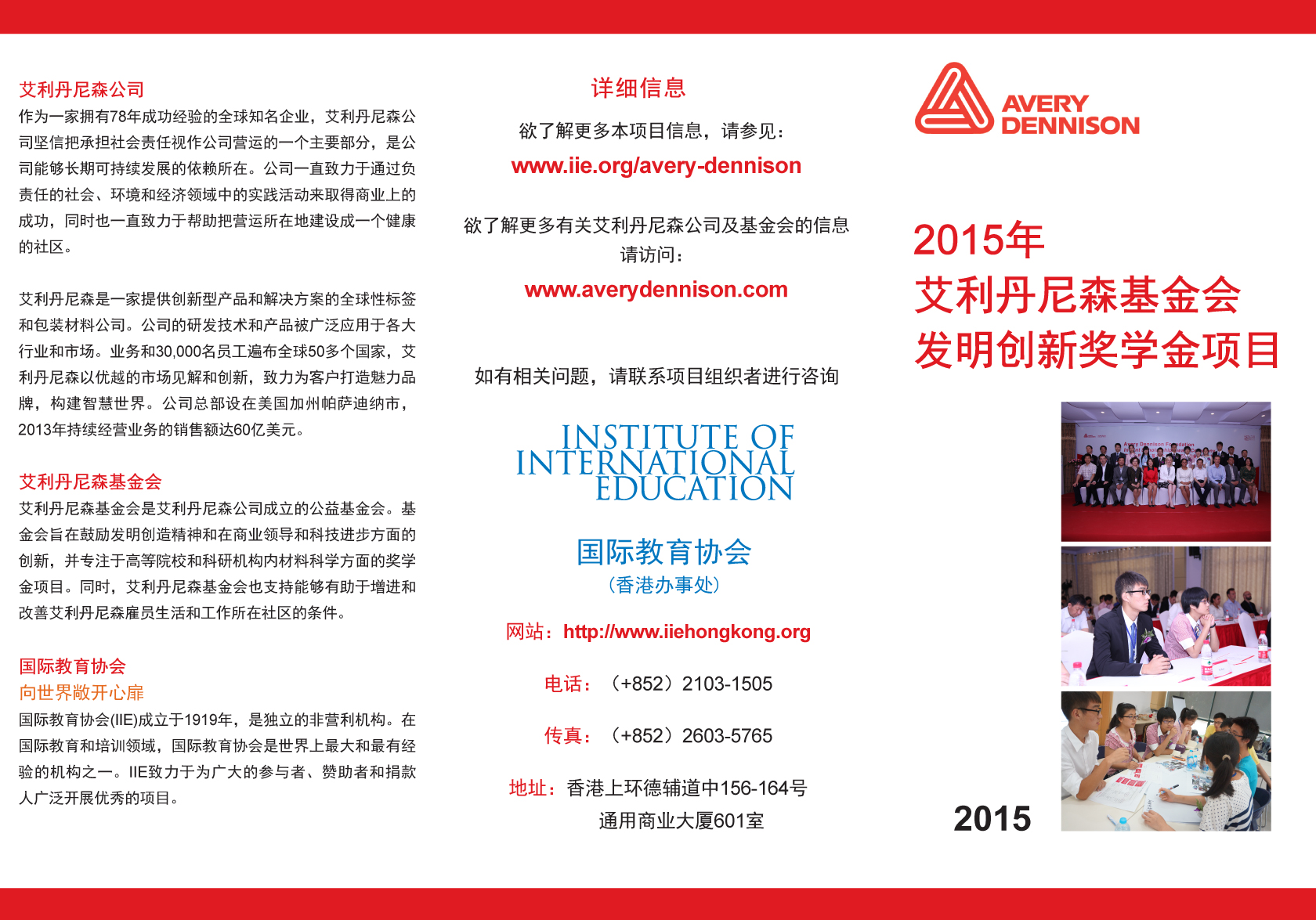 2015年艾利发明创新奖学金评选工作已经开始。请同学们踊跃报名!具体要求请看附件: