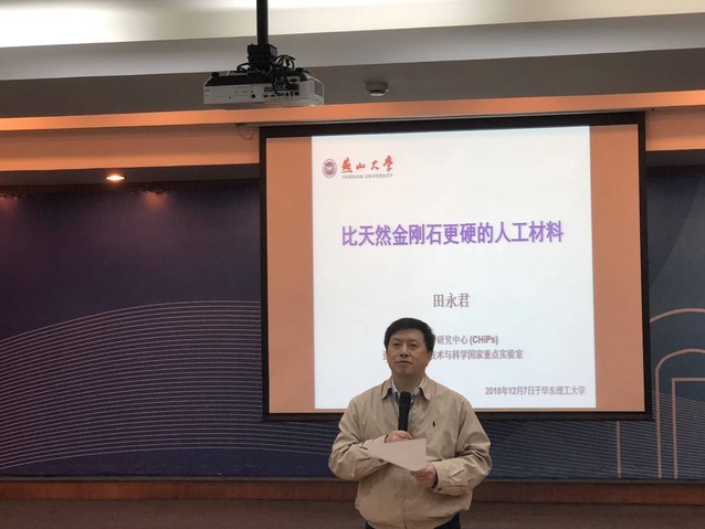 田永君教授受邀来校访问,并作了题为“比天然金刚石更硬的人工材料”的精彩报告。报告由副校长刘昌胜院士主持,动漫a片