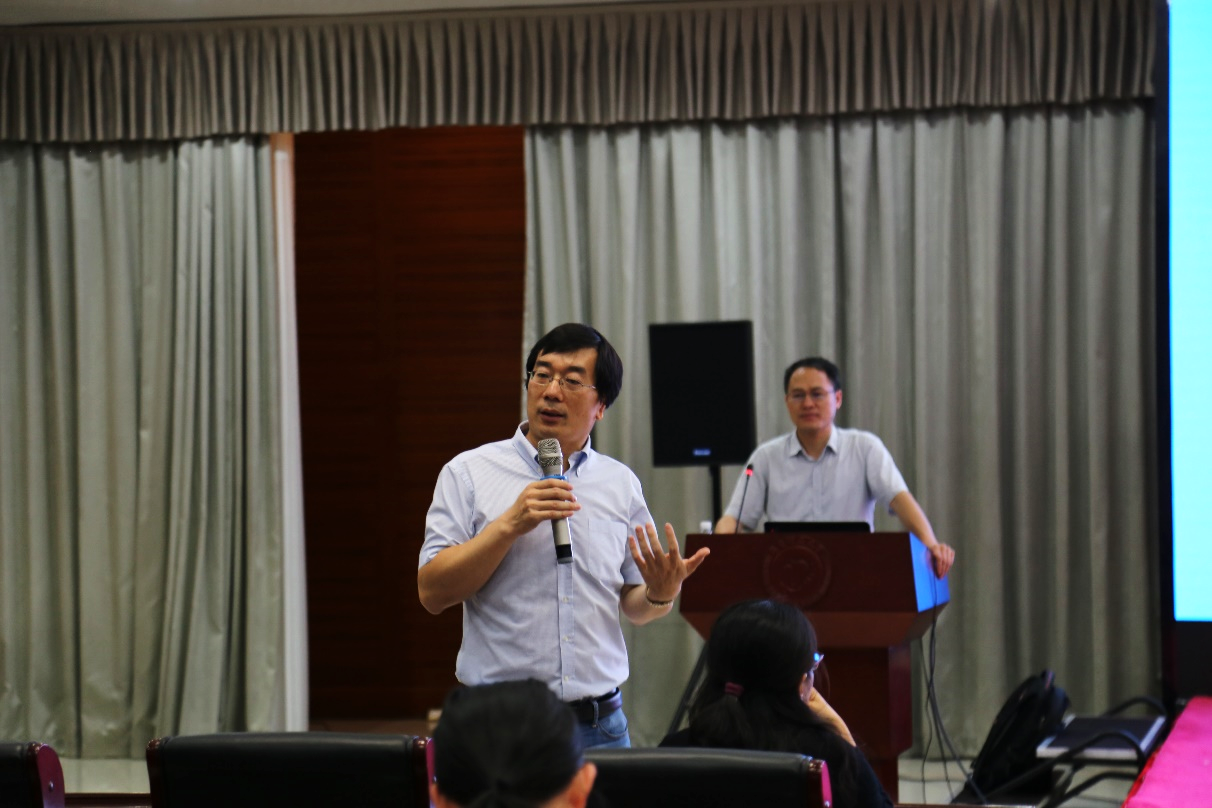 讲座中,周永丰首先从同学们生活中常见的化学现象开始,到大学操作过的基础化学实验,再进一步到微观分子层面的变化展示,提出了“为什么会有这些变化现象?”,“化学的奥秘又是什么?”等问题。他解释道,化学是研究物质之间相互作用的科学,也是创造新物质的重要手段和方法,是人类用以认识和改造物质世界的主要方法和手段之一,以化学为基础可以延伸出许多方向的新发展。同时,作为化学研究者,周永丰感到十分自豪的是化学领域虽不像当今信息工程如此热门,但它是一门从不会冷门的学科。