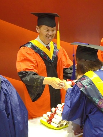 毕业生们迈着昂扬的步伐,排队依次上台领取卷轴,走过台阶,也走过了在华理求学奋斗的时光,华理往事历历在目,面对校院领导的拨穗与亲切慰问,毕业生们再次感受到送别的温情。