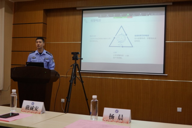 杨晨警官通过讲述真实案例、演示PPT与安全教育视频,介绍在校园内最容易发生的四大安全问题:电讯网络诈骗、公共空间盗窃、宿舍用电安全与校内交通安全。并针对其中要点、疑点进行详细解释,提高了研究生的安全意识和反诈骗、防盗窃与灭隐患的能力。