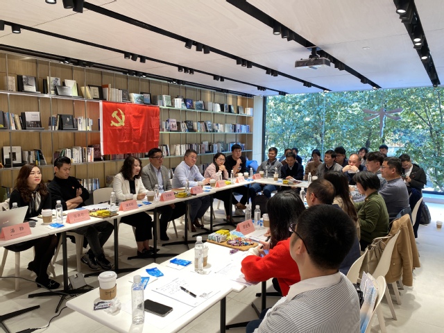 参观结束后,双方党员进行了座谈交流。装饰集团党委副书记刘飞同志介绍了上海建工装饰集团的发展历程、研究领域、主要成果、未来发展方向和党史学习教育中“我为群众办实事”的先进党建经验。他希望校企双方以联合党建为桥梁,发挥双方优势,紧密联系,探索更多的合作模式,共谋发展。