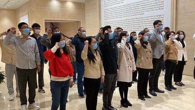 上午,校企双方一起参观了中共一大纪念馆。纪念馆内“前仆后继,救亡图存”、“民众觉醒,主义抉择”、“早期组织,星火初燃”、“开天辟地,日出东方”和“砥砺前行,光辉历程”5个部分生动讲述了中国共产党创建的历史背景、诞生的过程以及对实现中华民族伟大复兴的中国梦的历史贡献和现实意义。纪念馆内一件件珍贵的历史文物吸引了党员同志驻足观望,大家细心体会展品背后的历史故事,不时交流心得。在纪念馆的宣誓墙处,全体党员在袁媛书记的领誓下,重温入党誓词,再次对党和人民做出庄严的承诺。一个小时的参观学习,党员们回顾了中国共产党从诞生直至新时代铸就新辉煌的历史进程,更加坚定地认识到党的伟大、光荣和正确。