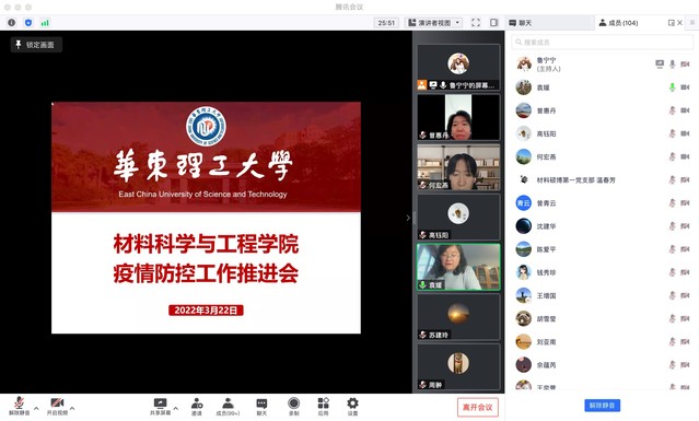 袁媛通报了近期全国、上海市、学校和我院的疫情防控情况,介绍了学院疫情防控专班及下设的8个工作组在教育教学保障、学生思政和心理疏导、教师思政和纪检工作、实验室安全保障、物资保障、信息统计报送及宣传工作方面所开展的工作。她指出,当前疫情防控正处于最吃劲的关键阶段,为坚决打赢这场疫情防控阻击战,切实保障全体师生生命健康安全,保证教学与科研的顺利进行,学院党委正在组织党员志愿者疫情防控队伍,希望全体党员把防疫工作作为当前头等大事,齐心协力、勇于担当。