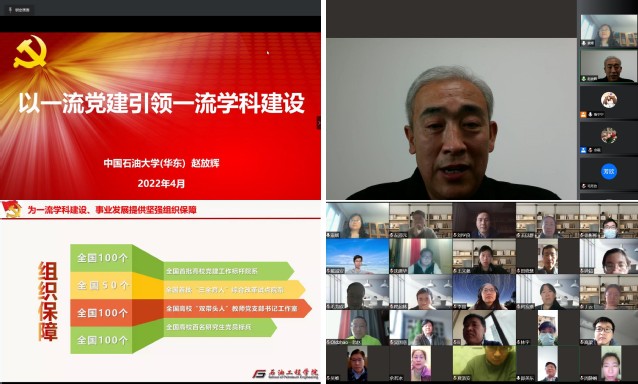 邀请中国石油大学(华东)地球科学与技术学院党委书记赵放辉,作题为《以一流党建引领一流学科建设》专题辅导报告,学院全体教职工、研究生党支部书记、党小组组长参会。会议由学院党委书记袁媛主持。