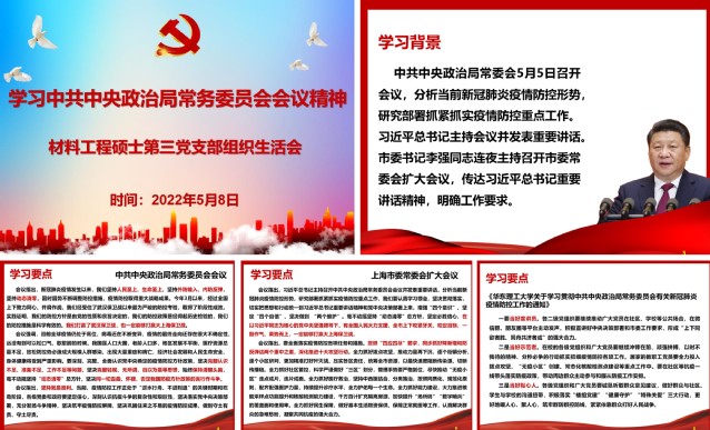 材料工程硕士第三党支部召开组织生活会,传达学习中共中央政治局常务委员会会议精神。校党委常委、副校长朱为宏作为联系指导支部的党员领导干部参加本次会议。动漫a片