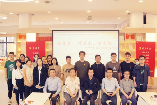 高分子材料第二党支部在徐汇校区图书馆明德书房组织“聚焦基因驱动高性能树脂创制 传承科技自立自强使命担当”主题党日观摩活动。高分子材料第二党支部成员、材料硕士第四党支部、材料硕士第六党支部学生党员代表参加了活动。化学院、化工学院、外语学院等师生党支部书记代表观摩了此次主题党日。活动由高分子材料第二党支部支委高梁主持。