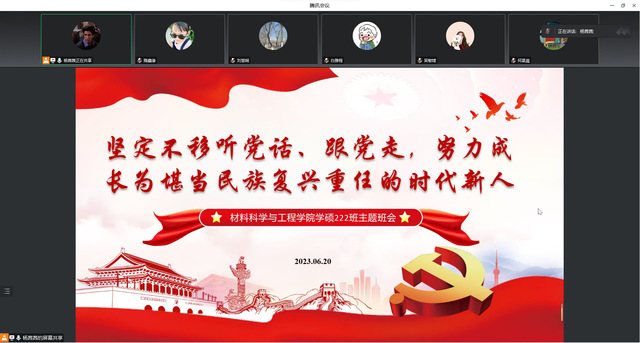 学硕222班开展了“坚定不移听党话、跟党走,努力成长为堪当民族复兴重任的时代新人”主题班会,班会由班长杨茜茜主持。学硕222班同学一同观看了中央政治局就第五次集体学习的新闻视频,学习了习近平总书记的重要讲话精神。
