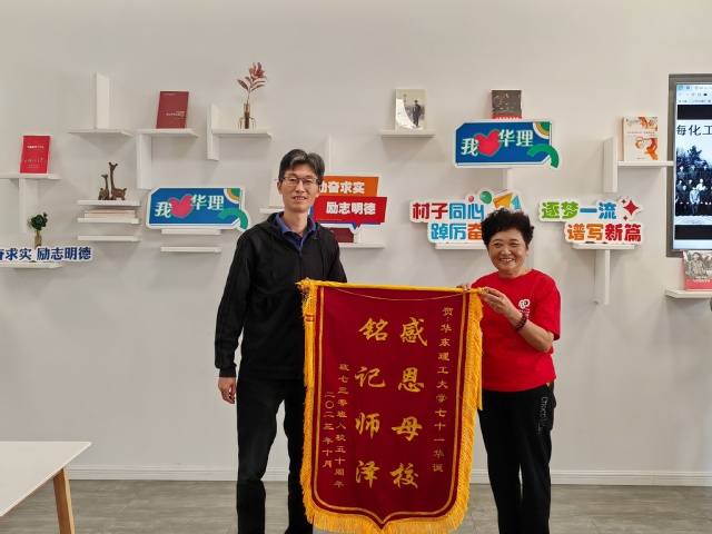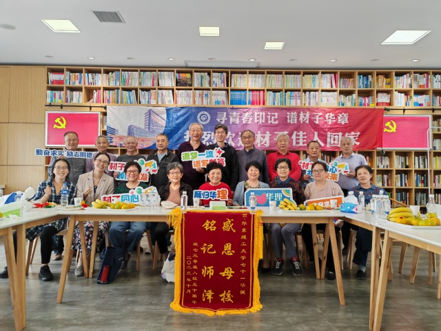 相识五十年,赴华理之约,重温校园印记。大家相邻而坐,畅谈青春,屏幕上“突然出现”的73级毕业大合影让大家感慨万分,目光缓缓移动,找寻同学身影。校友们分享在华理求学的故事,纷纷表示感谢母校的培养。会上,校友们送上了一面感恩母校的锦旗。