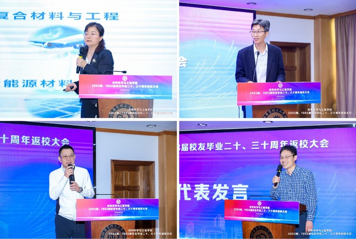 在校友代表发言环节,高材891班班级联络员、上海巨安科技有限公司副总经理方勇讲述了在华理求学的故事和毕业以后的发展情况,针对如何加强校友联络、促进合作平台搭建交流了感想。无材992班校友、中国科学院上海硅酸盐研究所研究员毛小建回顾了在母校度过的青葱岁月和求学、工作历程,表达了对母校的感恩之情。入学年代不同,却都从华理梦想的起点出发,在各自的人生轨迹上续写华理篇章。