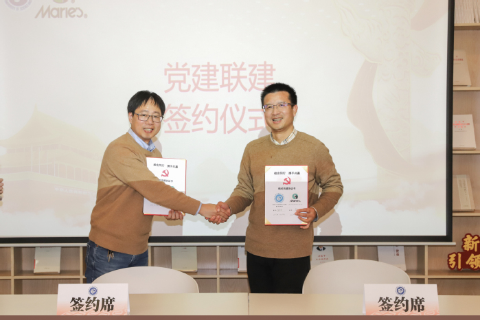 复合材料党支部书记章圣苗签署了党建联建协议,提升双方基层党建工作水平和合作质效,促进党建业务融合。
