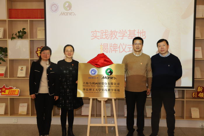 党委书记袁媛、上海马利画材股份有限公司董事长蒋熙洲以及总经理闫加伟共同为实践教学基地揭牌,此次合作标志着双方将正式建立起长期稳定的合作关系,推动产教融合深入开展。