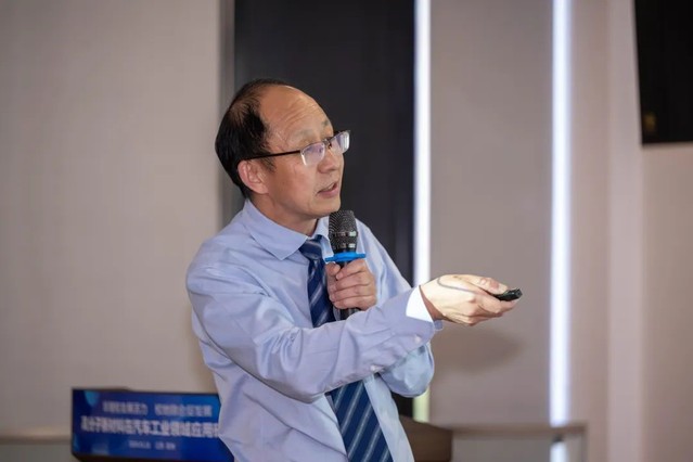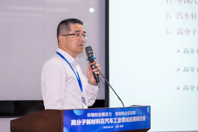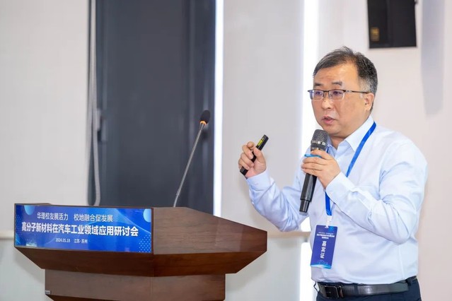 高分子材料系主任周权教授作了“聚合物基复合材料在汽车领域的应用与挑战”的报告。