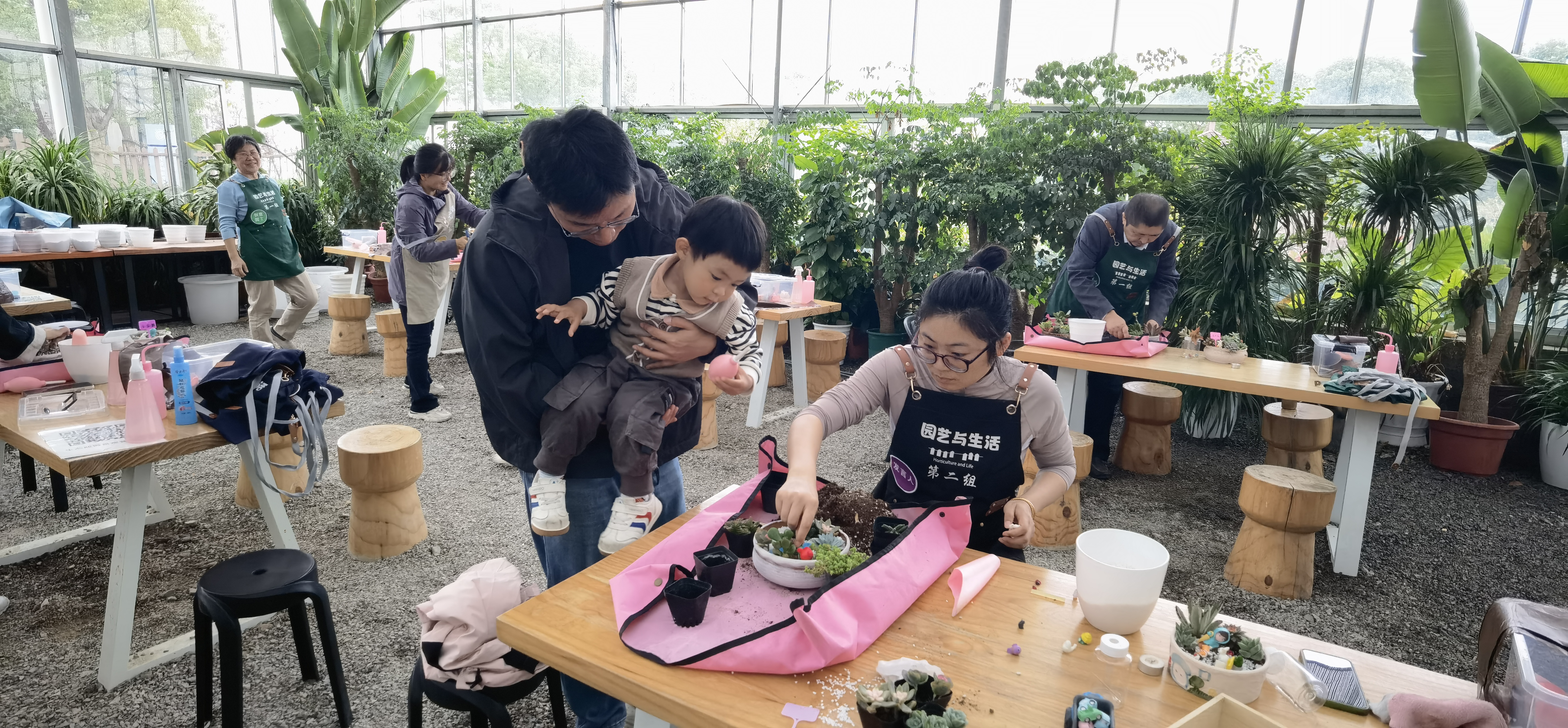 到达奉贤校区后,老师们兵分两路。一部分青年教师前往体育馆,和学生开展羽毛交流,在“你来我往”中锻炼身体,增进师生情谊。另一部分老师来到了劳动教育实践基地,在指导老师的带领下了解多肉类植物的种植、养护知识,并兴趣盎然地制作创意多肉拼盆,体验园艺乐趣,放松身心。