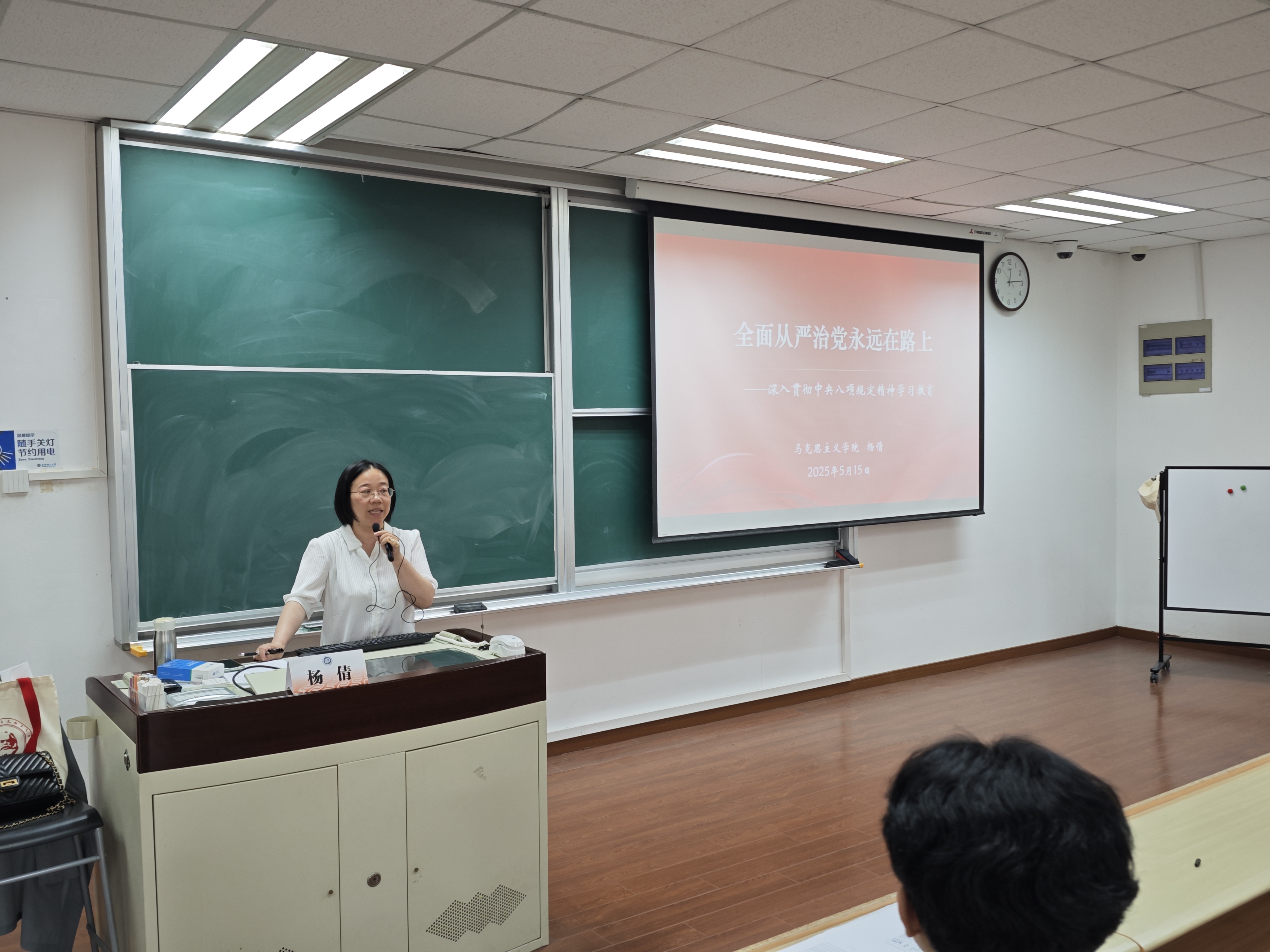 扎实推进深入贯彻中央八项规定精神学习教育,加强对入党积极分子青年的思想引领5月15日动漫a片 “全面从严治党永远在路上”入党积极分子培训班专题党课在奉贤校区E221举办本次党课邀请马克思主义学院党委副书记杨倩作为主讲人,120余名本研入党积极分子参加