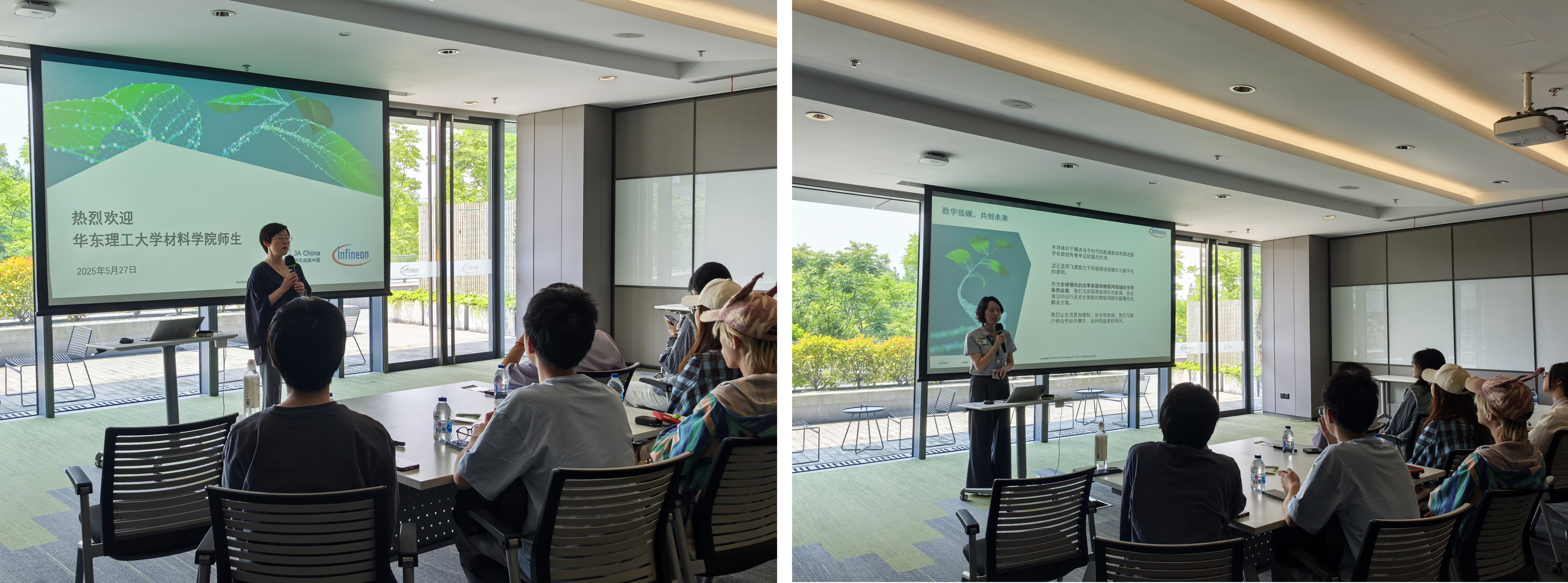 在职业导师引领下,学生系统参观了英飞凌科技展厅,通过详实的数据图表与产品实物展示,充分接触和感受到其在汽车功率模块、清洁能源技术、智能用电系统及工业物联网等前沿领域的创新成果与应用场景。