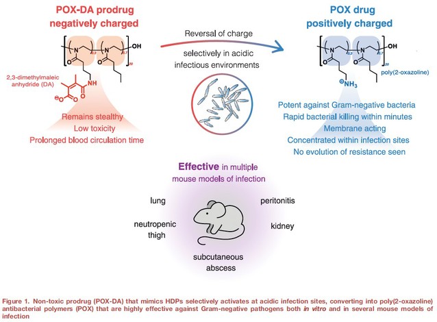 该研究报道了一种感染部位原位激活的宿主防御肽模拟前药设计策略,在实现“生理环境隐形、感染部位激活”响应性精准抗感染治疗的同时,还可将原本因毒性和生物利用度等问题受限的多肽类化合物转化为安全有效的候选药物分子,为开发具有体内应用潜力的新型抗感染药物提供了新思路。研究成果以“A host defense peptide-mimicking prodrug activated by drug-resistant Gram-negative bacterial infections”为题,以封面文章发表在ScienceTranslational Medicine(Sci. Transl. Med.2025, 17, 801, eadl4870)。该研究成果最近还被Nature Reviews Drug Discovery作为研究亮点报道(//doi.org/10.1038/d41573-025-00118-7)。