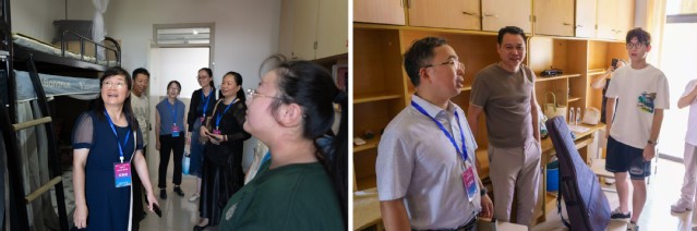 学校及学院领导来到迎新现场,了解报到情况,并与工作人员亲切交流。随后,他们走访新生宿舍,与新生及家长面对面畅谈,耐心答疑解惑。现场志愿者们热情满满、分工明确,引导报到、搬运行李,以饱满的热情展现材料学子的良好风貌,成为一道靓丽的风景线。