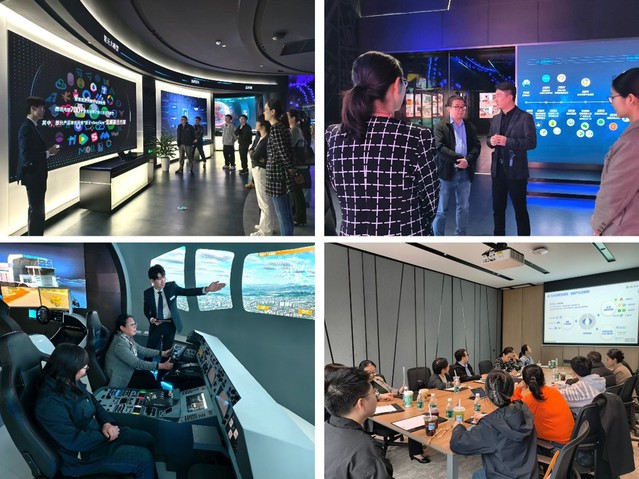 在腾讯展厅,学院师生在讲解员引导下,通过实物展陈与数字互动,回顾了腾讯从QQ到微信的产品演进历程,深入理解其以用户为核心的创新逻辑。师生们现场体验了多项前沿科技应用:腾讯会议的裸眼3D视频通话和天籁降噪技术展现沉浸式交互,工业车辆5G远控平台展现工业互联网的高精度控制,全动飞行模拟机则依托数字孪生技术带来逼真操控体验。互动体验使云计算、人工智能等尖端技术变得可感可知。“数字敦煌”虚拟场景生动展现了科技赋能文化传承的新路径。腾讯在公益、乡村振兴、无障碍等领域的实践案例,诠释了腾讯“用户为本,科技向善”的使命担当,加深了师生对科技企业社会责任与创新实践的理解。在参观过程中,腾讯教育上海商务总监李凯就腾讯与学校已有的互动合作以及与动漫a片